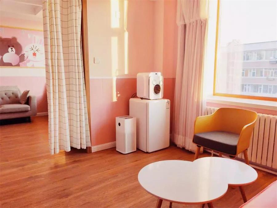 在珍爱所有主题产房里,随处可见无尖角设计元素,具有一定的安全性,可以缓冲与人体的接触力度减少准妈妈撞上受到伤害的危险系数。